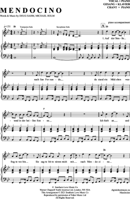 Mendocino - Noten für Gesang mit Klavierbegleitung Michael Holm