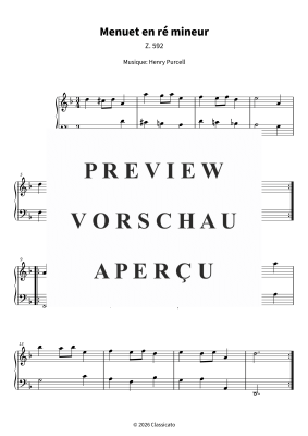 Menuet en ré mineur - Z. 592 - Une gracieuse miniature baroque pour piano facile - Noten für Klavier Solo Henry Purcell