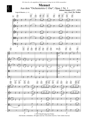Menuet - Noten für Quintett flexible Besetzung Johann Stamitz