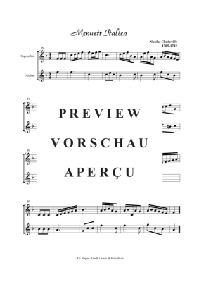 Menuett Italien F-Dur - Noten für Sopranflöte + Altflöte, Duett Nicolas Chedeville (1705-1782)