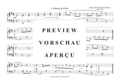 Menuett No.1 in D-Dur - Noten für Klavier/Cembalo/Orgel Solo Johann Christoph Friedrich Bach