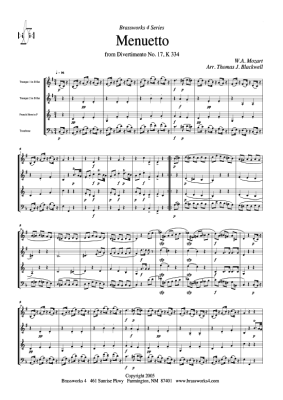 Menuett - Noten für 2xTrompete in B, Horn in F, Posaune W. A. Mozart (Divertimento Nr. 17, K 334)