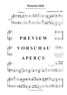 Menuetto 1 - Noten für Klavier Solo Joseph Haydn
