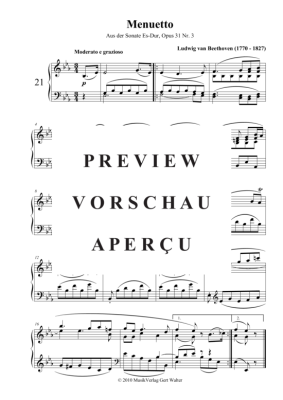 Menuetto - Noten für Klavier Solo Ludwig van Beethoven