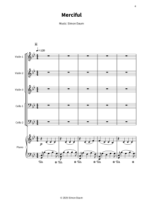 Merciful - Noten für 3x Violine, 2x Violoncello und Klavier Simon Daum