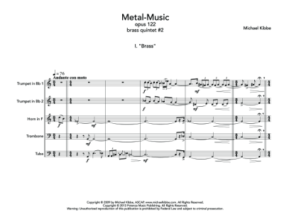 Metal Music, Op. 122 - Noten fĂŒr BlechblĂ€ser Quintett Michael Kibbe