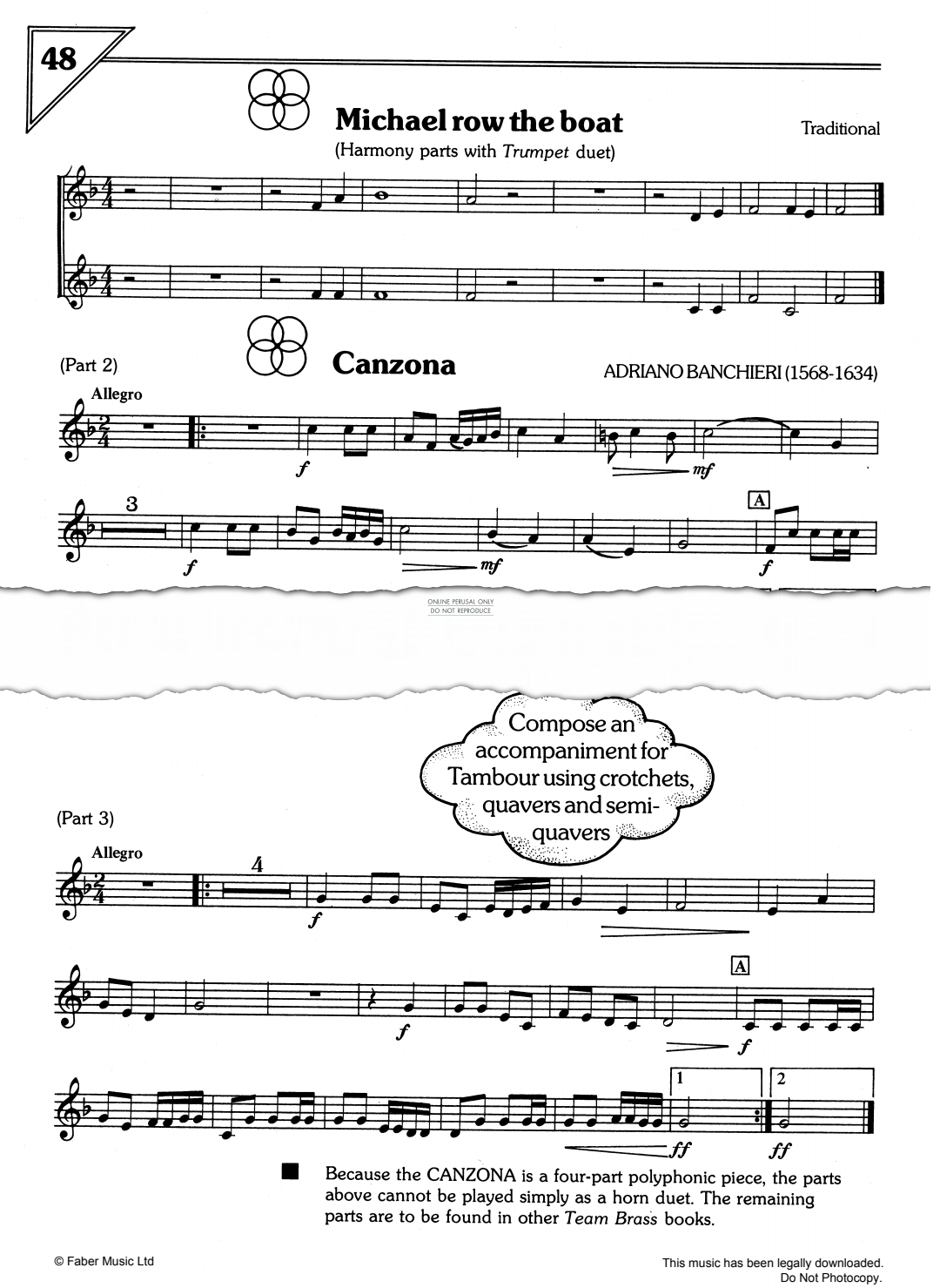 Michael Row The Boat/Canzona - Noten für Horn