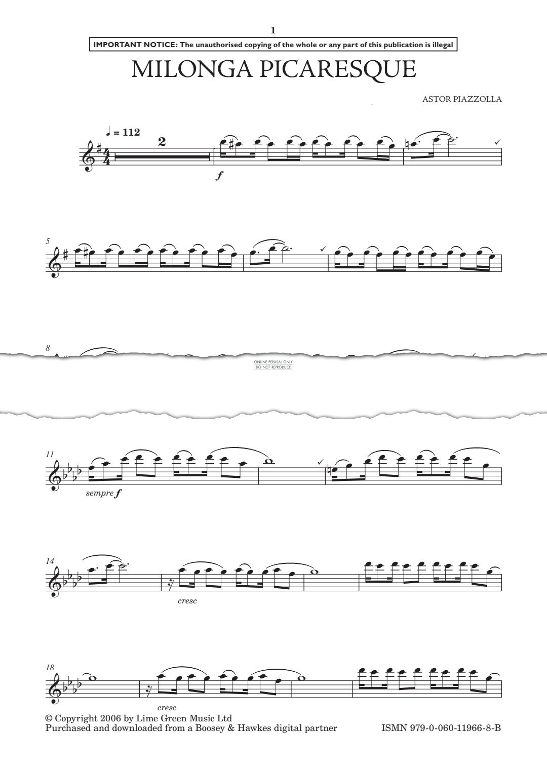Milonga Picaresque - Noten für Flöte, Klavier Astor Piazzolla