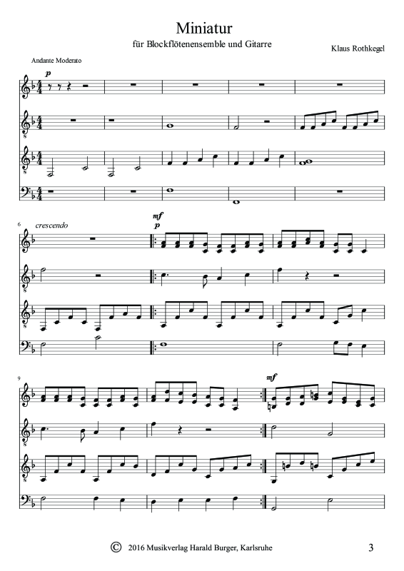 Miniatur für Blockflötenensemble & Gitarre (Partitur) (Gemischtes Ensemble)