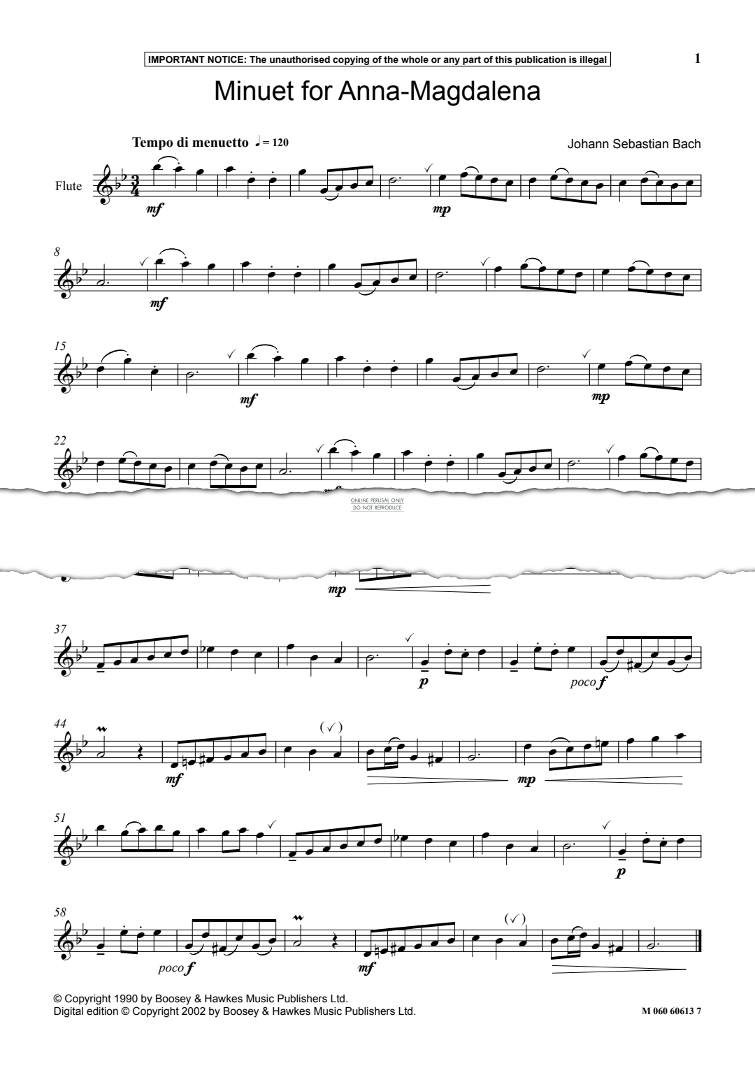 Minuet for Anna-Magdalena - Noten für Flöte, Keyboard Johann Sebastian Bach