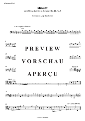 Minuet - from String Quintet in E major, Op. 11, No. 5 - Noten für Cello Luigi Boccherini