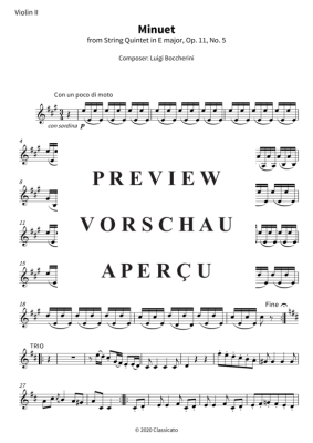 Minuet - from String Quintet in E major, Op. 11, No. 5 - Noten für Violine II Luigi Boccherini