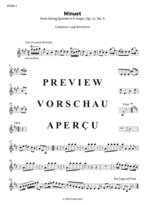 Minuet - from String Quintet in E major, Op. 11, No. 5 - Noten für Violine I Luigi Boccherini