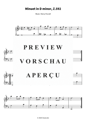 Minuet in D minor - Z. 592 - A graceful Baroque miniature for easy piano - Noten für Klavier Solo Henry Purcell