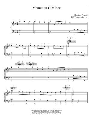 Minuet In G Minor - Noten für Klavier Johann Sebastian Bach