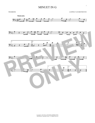 Minuet In G - Noten für Posaune Johann Sebastian Bach
