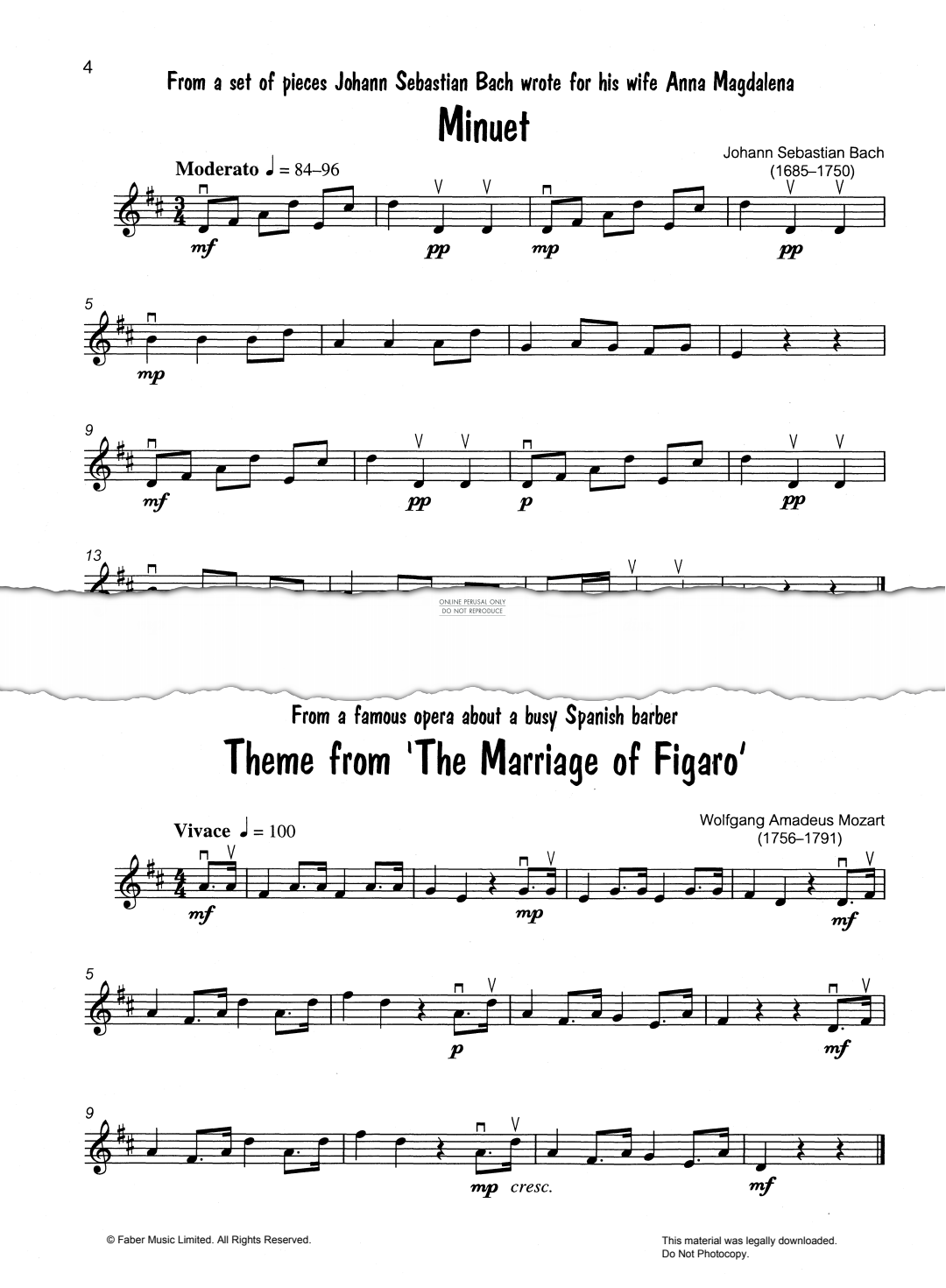 Minuet/Theme from 'The Marriage Of Figaro' - Noten für Violine Johann Sebastian Bach