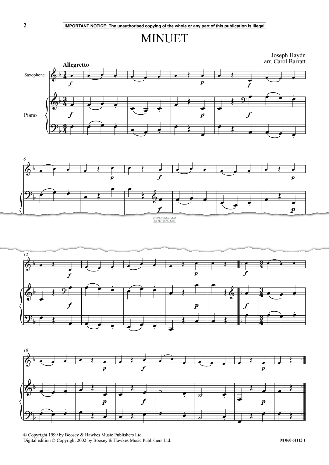 Minuet - Noten für Klavier, Saxophon Joseph Haydn