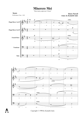 Miserere Mei - Noten fĂŒr BlechblĂ€serquintett Henry Purcell