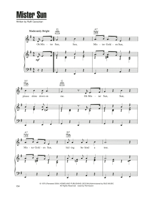 Mister Sun - Noten für Gesang, Gitarre, Klavier Raffi Cavoukian