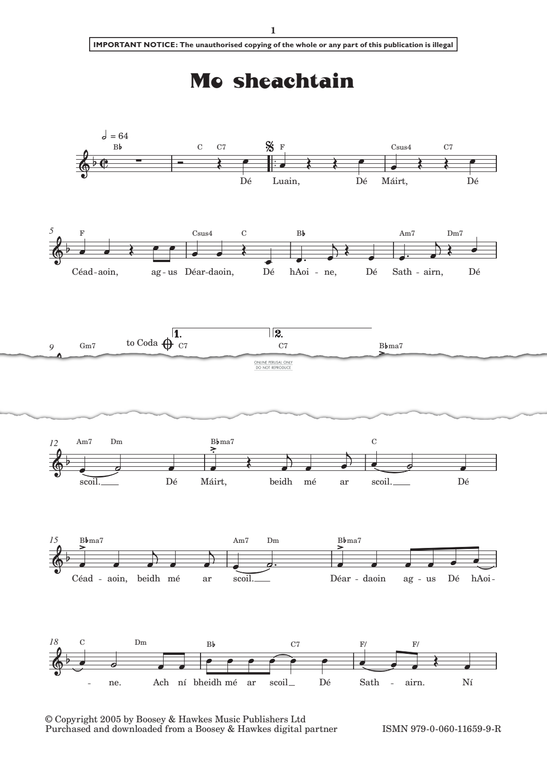 Mo sheachtain (My week) - Noten für Chor, Gesang, Klavier Sue Furlong