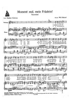 Moment mal, mein Fräulein - Noten für Klavier und Gesang Tango
