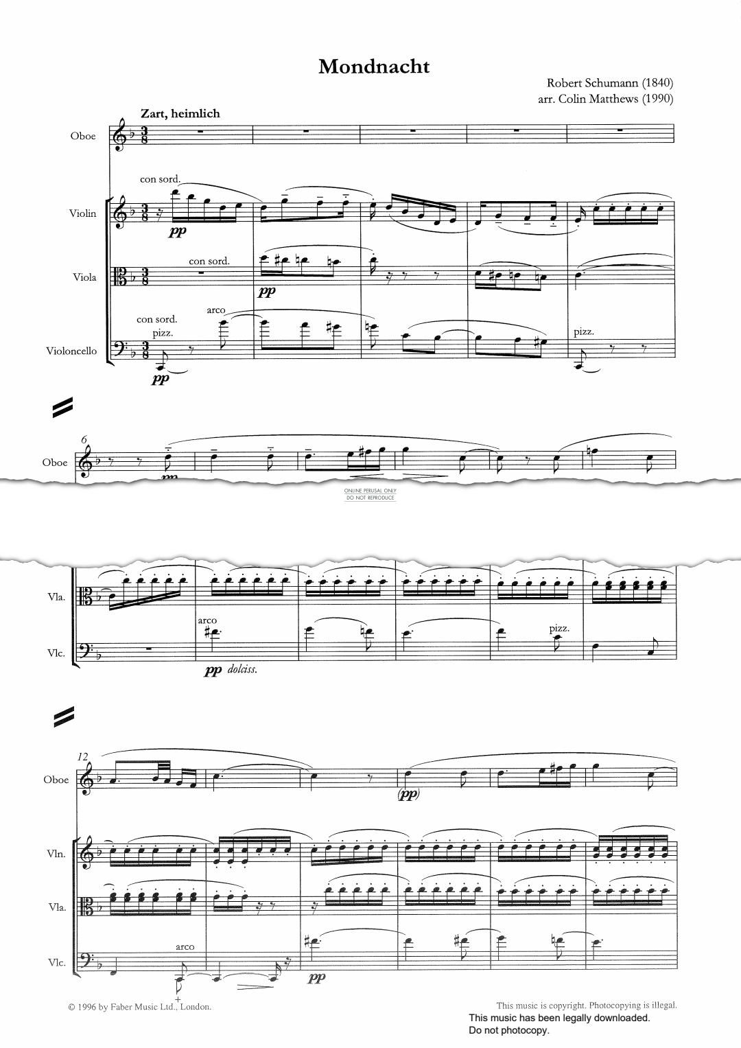 Mondnacht - Noten für Oboe, Viola, Violine, Violoncello Robert Schumann