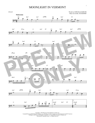 Moonlight In Vermont - Noten für Violoncello Karl Suessdorf