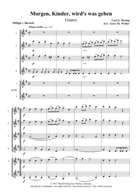 Morgen, Kinder, wird´s was geben - Noten für 4-6 Gitarren Carl G. Hering