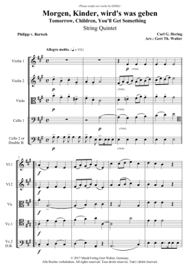Morgen, Kinder, wird´s was geben - Noten für Streicherquintett Carl G. Hering