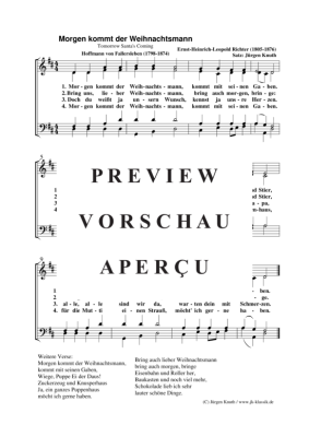Morgen kommt der Weihnachtsmann (Tomorrow Santa's Coming) - Noten für Gemischter Chor Ernst-Heinrich-Leopold Richter (1805-1876)