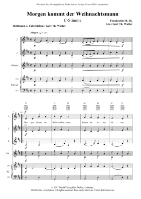 Morgen kommt der Weihnachtsmann - Noten für flexibles Quintett Traditional