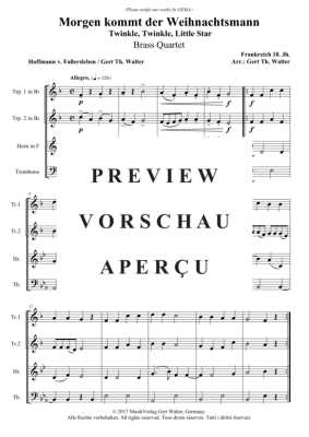 Morgen kommt der Weihnachtsmann - Noten für Blechbläserquartett Traditional