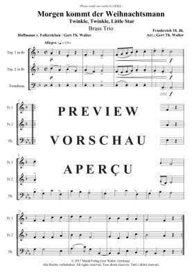 Morgen kommt der Weihnachtsmann - Noten für Blechbläser Trio Traditional