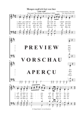 Morgen muß ich fort von hier (Text nach Des Knaben Wunderhorn) - Noten für Gemischter Chor Friedrich Silcher (1789-1860), Satz: Jürgen Knuth *1952