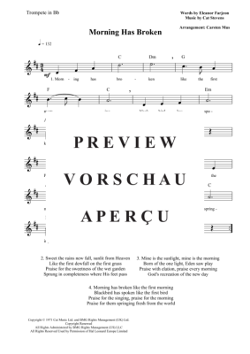 Morning Has Broken (D-Dur) - Noten für Trompete in B Solo + Akkorde Cat Stevens