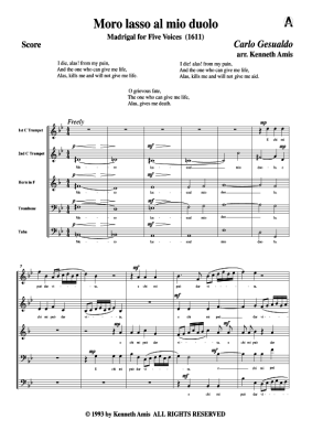 Moro lasso al mio duolo - Noten für Blechbläserquintett Carlo Gesualdo (Madrigale 1611)