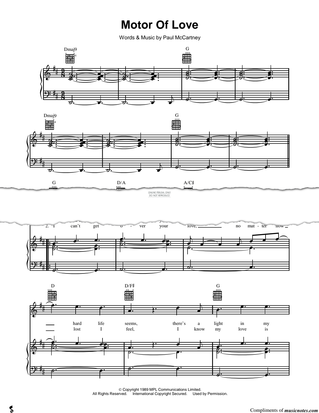 Motor Of Love - Noten für Gesang, Gitarre, Klavier Paul McCartney