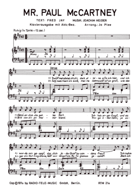 Mr. Paul McCartney - Noten für Klavier und Gesang Marianne Rosenberg
