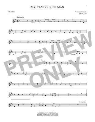 Mr. Tambourine Man - Noten für Trompete Bob Dylan
