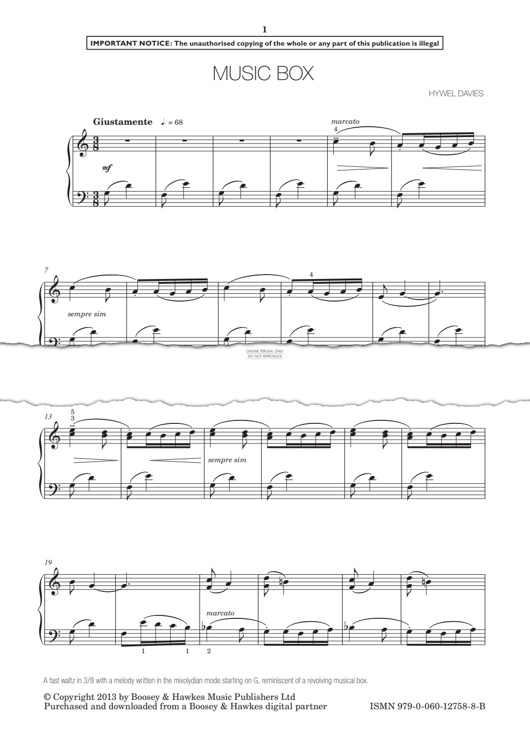 Music Box - Noten für Klavier Hywel Davies