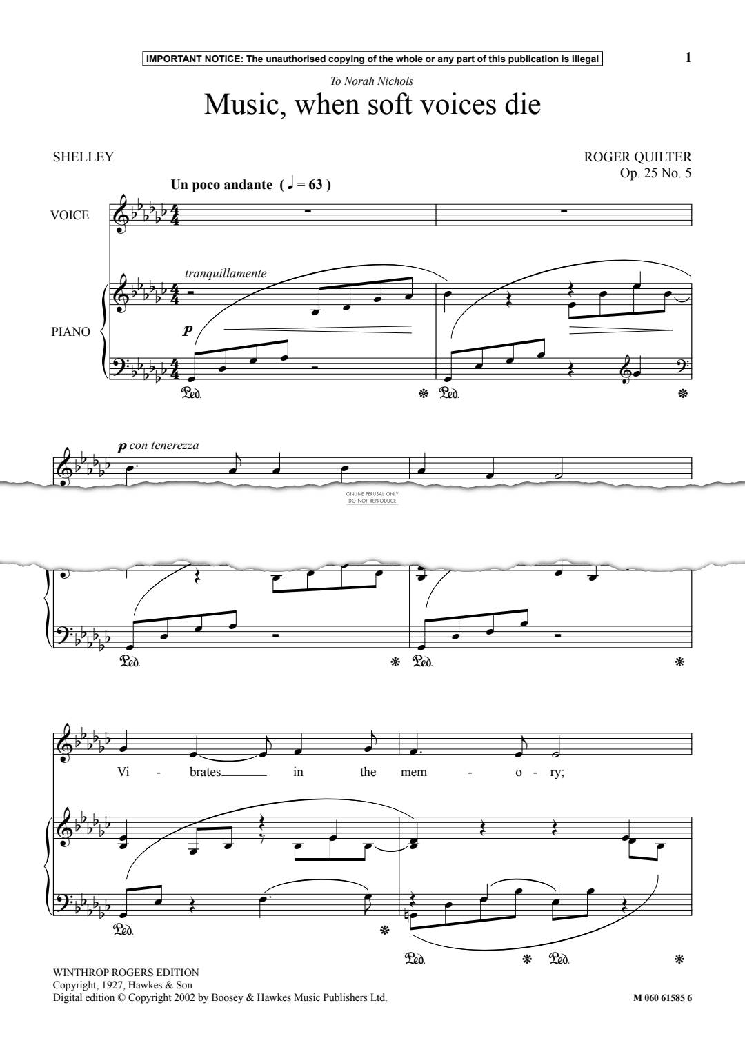 Music, When Soft Voices Die - Noten für Gesang, Klavier Roger Quilter