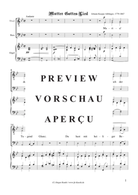 Mutter Gottes-Lied - Noten für Gemischter Chor TTB + Orgel Johann Kaspar Aiblinger