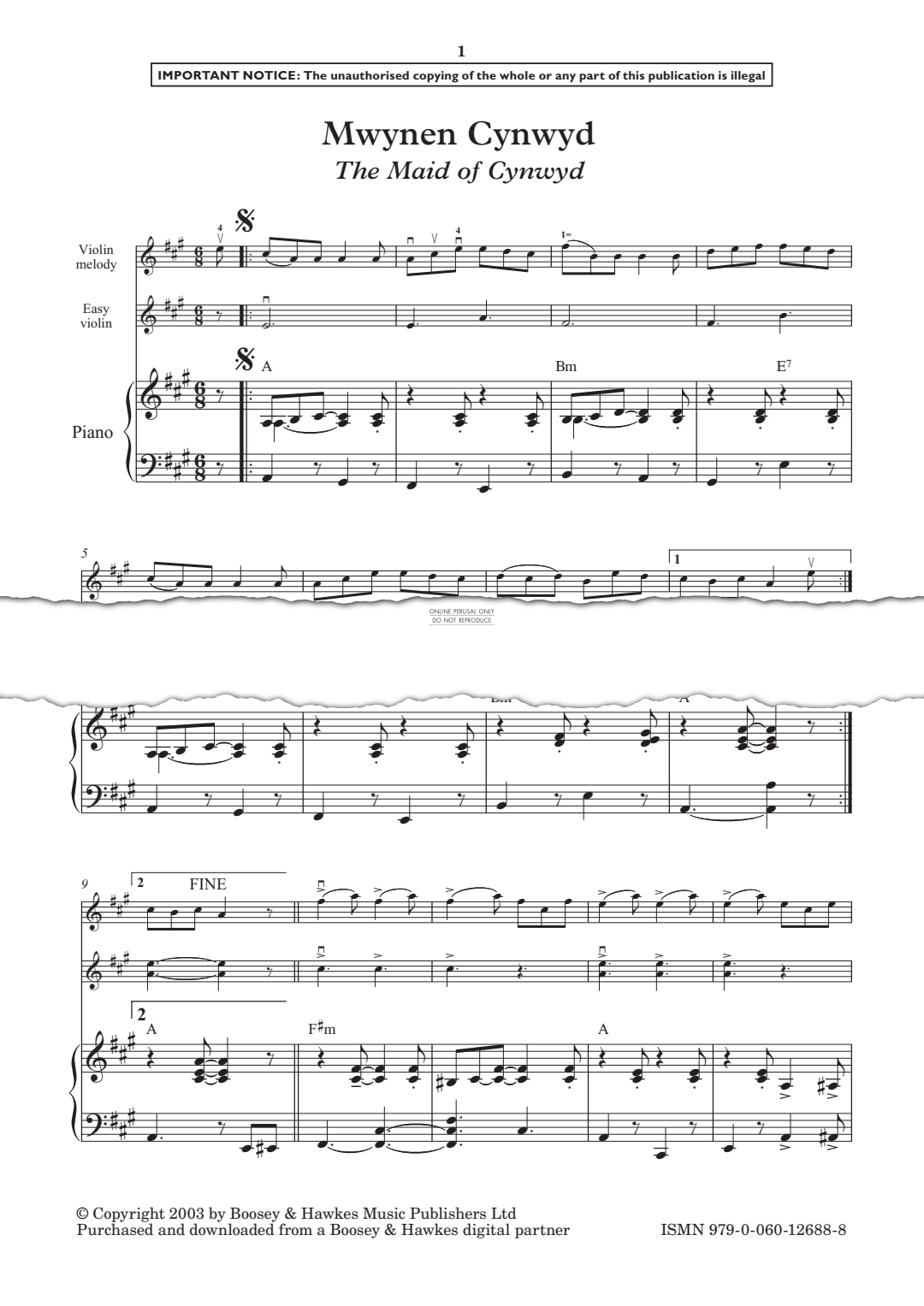 Mwynen Cynwyd (The Maid of Cynwyd) - Noten für Klavier, Violine Edward Huws Jones