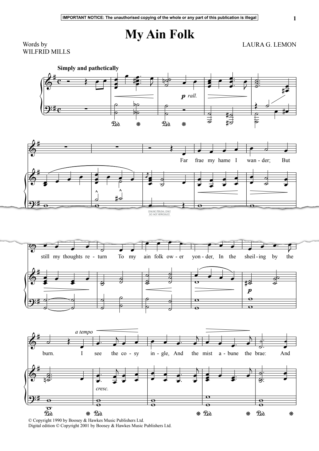 My Ain Folk - Noten für Gesang, Klavier Laura G. Lemon