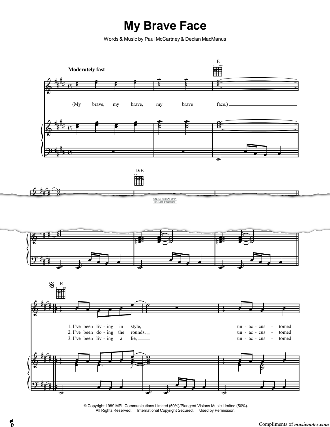 My Brave Face - Noten für Gesang, Gitarre, Klavier Paul McCartney