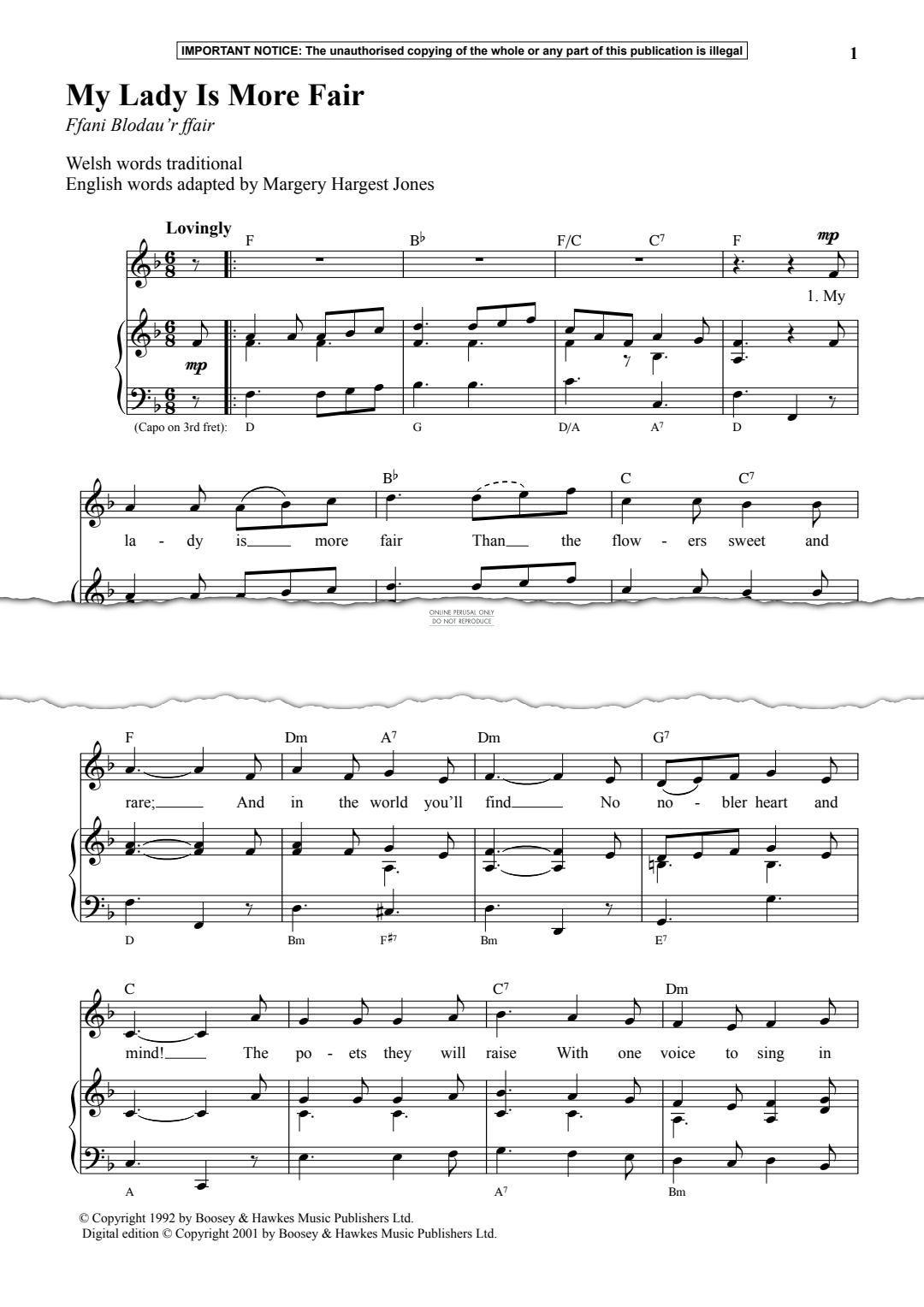 My Lady Is More Fair - Noten für Gesang, Klavier Welsh Traditional