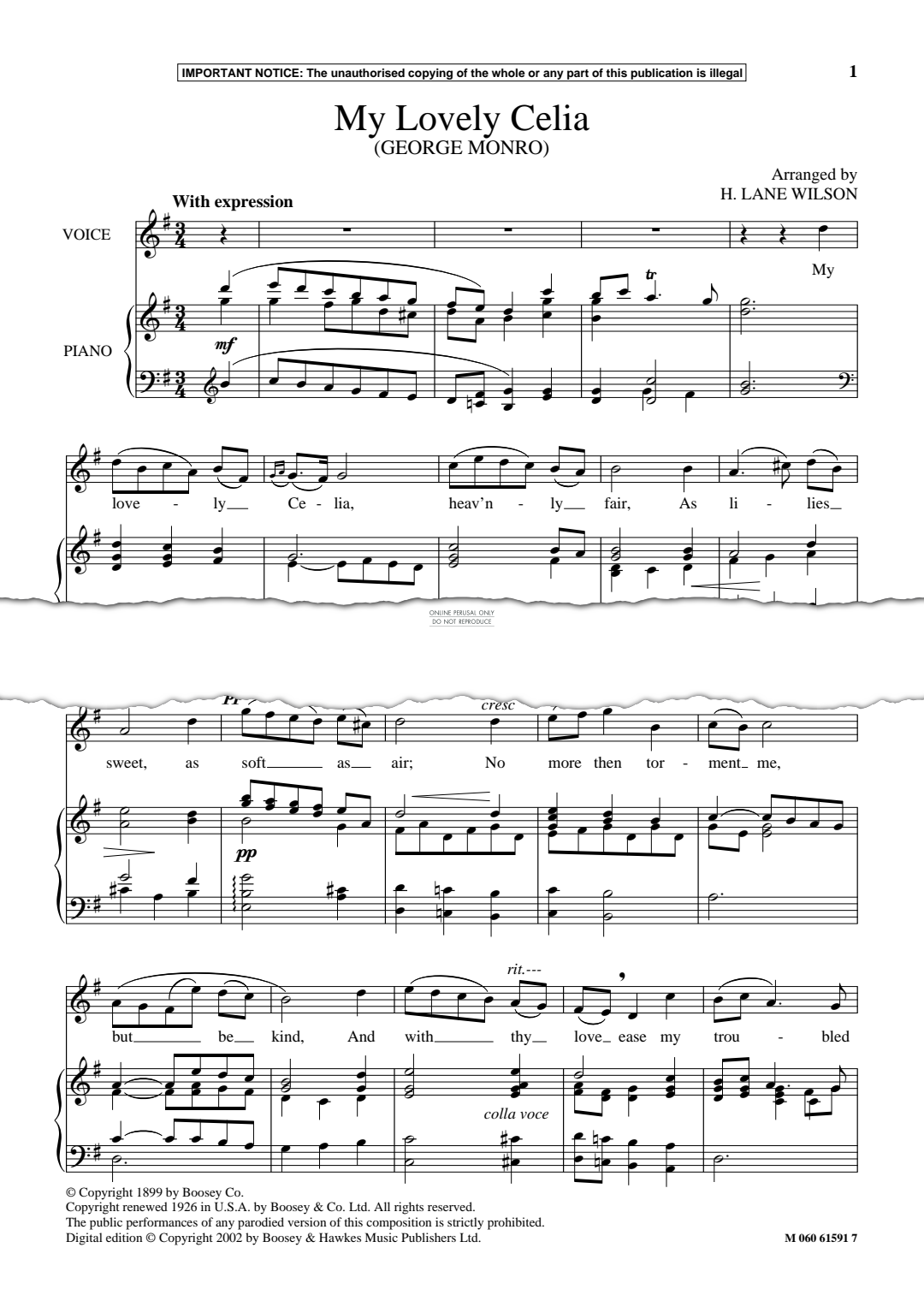 My Lovely Celia - Noten für Gesang, Klavier H. Lane Wilson