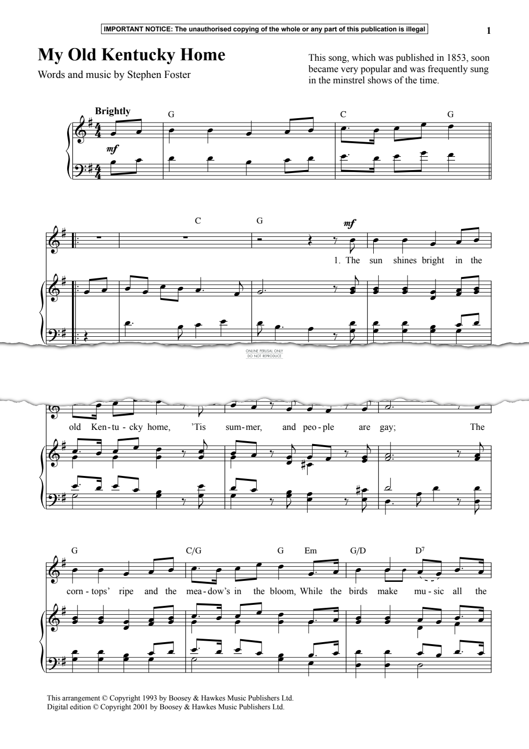 My Old Kentucky Home - Noten für Gesang, Klavier Stephen Foster