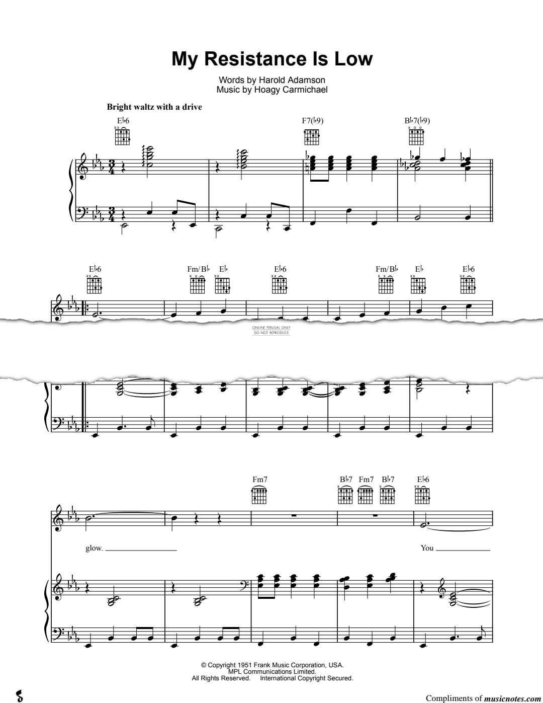 My Resistance Is Low (from 'The Las Vegas Story') - Noten für Gesang, Gitarre, Klavier Hoagy Carmichael
